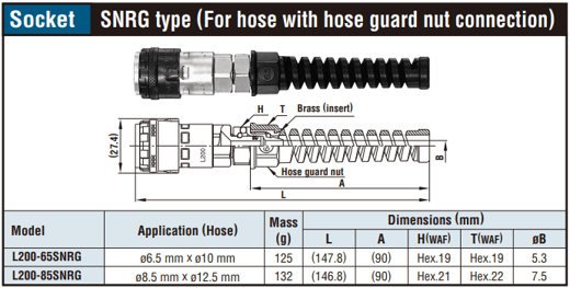 • Hose guard nut to prevent hose from kinking as a standard feature (SNRG type)